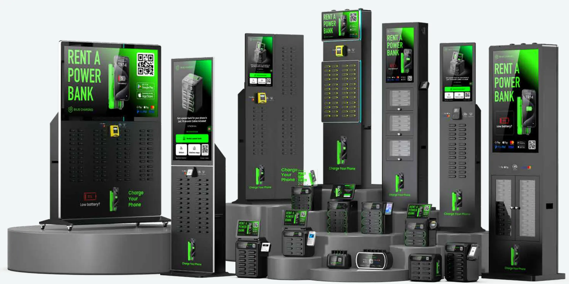 Large-scale manufacturing reduces investment costs, making it easier for operators to enter the phone charging units market.A portable battery charging station factory accelerates business deployment and helps operators quickly launch portable power bank station businesses in their countries.With intelligent management systems, operators can reduce daily operational costs and maximize revenue.